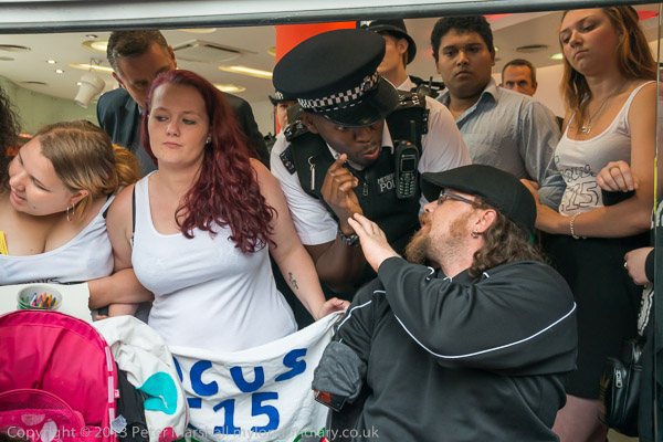 and one photographer. I'd decided not to try and get inside the shop unless most of the protesters did