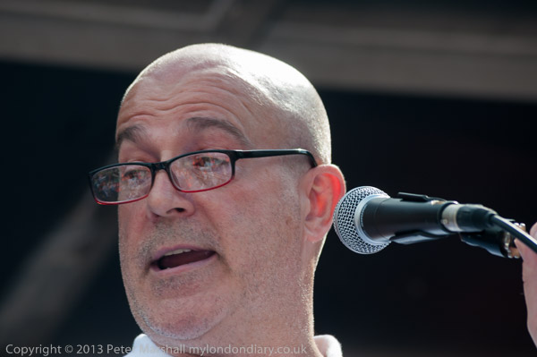 ![]() Roger Hutt, Unison shop steward from Doncaster where the strike at the Health care company he is legally ![]() gagged from naming was then on day 34. It is a fight to retain quality of care in the health service ![]() And a Unison worker with a banner from the strikers ![]() came and stood on the platform as he spoke ![]() Ian Lawrence of NAPO speaking on their fight against privatisation of the probation service ![]() ![]() Luftur Rahman, Mayor of Tower Hamlets is rightly proud of his record - the first living wage borough, the have ![]() continued EMA payments, given students a £1500 grant, provided free home care and more. ![]() Its hardly suprising he has come under attacks from the establishment and the right-wing press, with a ![]() truly scurrilous attack from the BBC shortly before the Mayoral election - which he won by well over 3000 votes in the second round. |