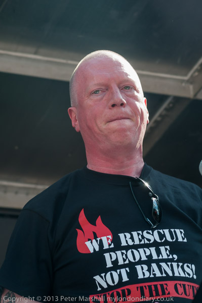![]() Lindsey German was almost hidden by the lectern, but her voice came over strongly ![]() Kate Hudson, CND ![]() ![]() Matt Wrack, FBU explains the message on the t-shirt he and many other FBU members were wearing ![]() 'We Rescue People Not Banks' was the response of Spanish fierfighters in Valencia in 2012 when they were asked to evict people from their homes ![]() ![]() ![]() |