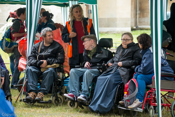 Police stop Andy until people telling them they are discriminating against a disabled man persuade them to move