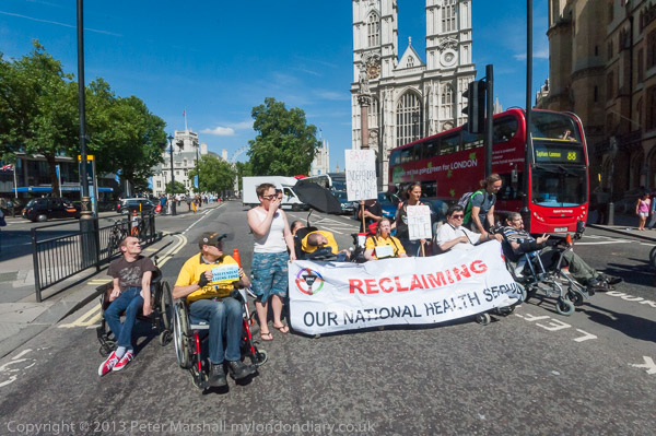The protesters hold a banner 'Reclaiming our National Health Service'