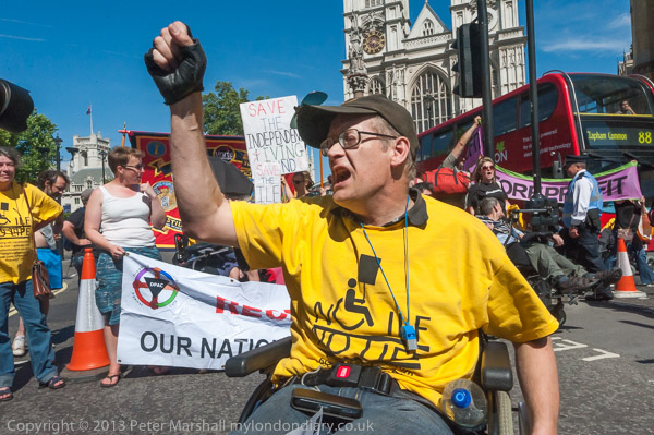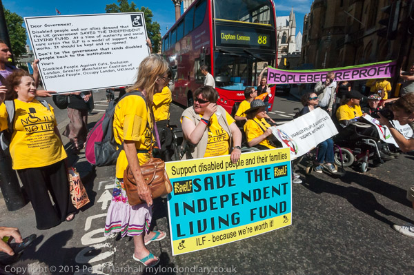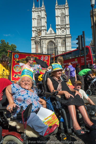 blocking both carriageways with their wheelchairs. Paula holds up the postcard and we can read the message