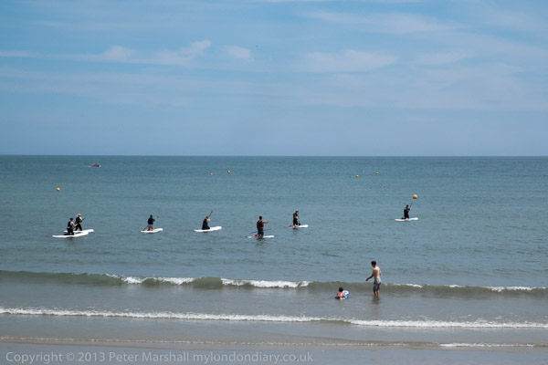 ![]() ![]() ![]() ![]() ![]() ![]() ![]() ![]() I feel a desperate thirst and maje my way to the Cobb Arms, ![]() after which we go to the beach ![]() ![]() Where we sit down and eat our sandwiches ![]() watching people paddle out on boards. |