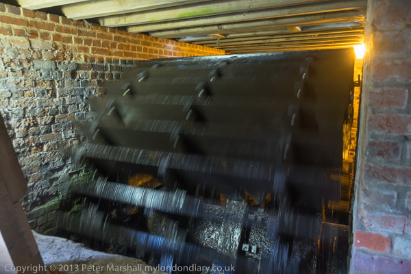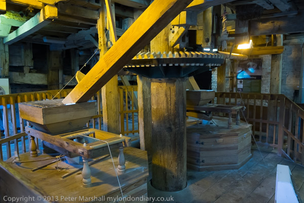 - and we took some flour home to make bread. This undershot wheel powers the mill