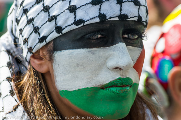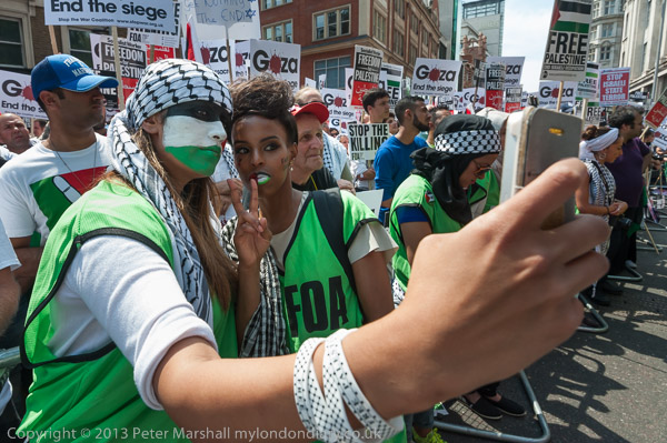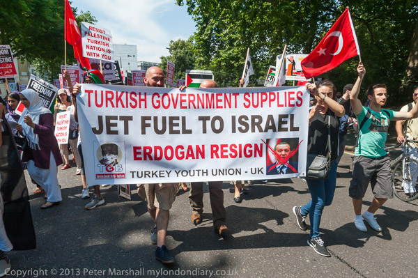 ![]() A 'selfie' at the front of the rally ![]() ![]() ![]() The march gets ready to leave ![]() The front of the rally - taken over the arms of the stewards from outside the box at the front of the march ![]() ![]() Leaning over the arms of the stewards as the march went along the road ![]() I left the front of the march after around half a mile and walked back through the marchers to the start ![]() 'Stop Arming Israel' a banner points out the £130m arms exposrts from the UK to Israel in 2008-12 ![]() 'Bombing for Peace is like F**king for Virginity! Free Palestine Now!' ![]() Turkey Youth Union UK banner 'Turkish Government supplies Jet Fuel to Israel - Erdogan Resign'. Much of that oil probably comes from ISIS, who are said to be largely financed by their oil sales through Turkey. |