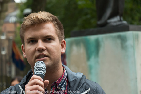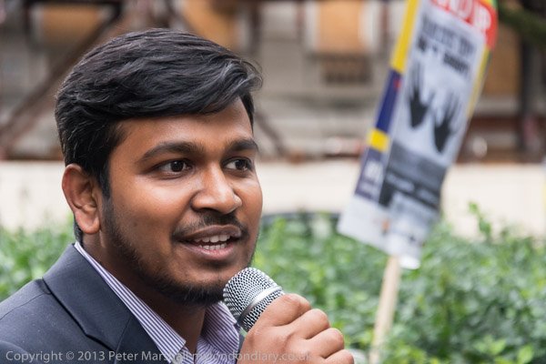 In a curious incident at the end of the protest, one speaker who wanted to announce a related event