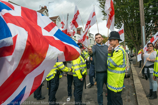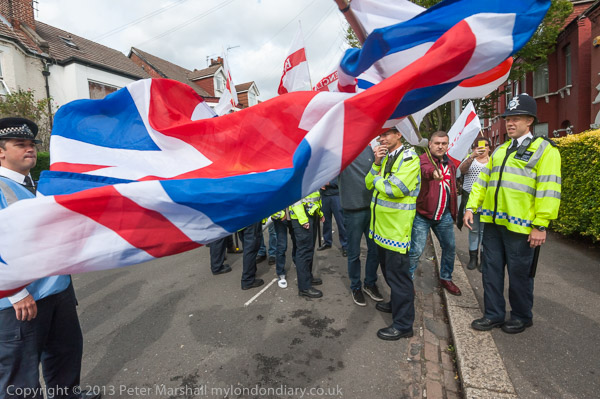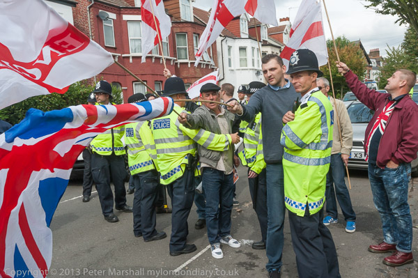 Eventually police reacted to the violent attacks with flags - by forcing photographers further back!