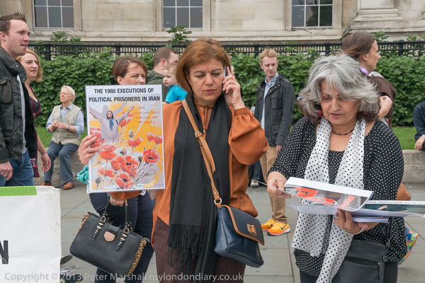 ![]() In Trafalgar Square the Supporters of the Mourning Mothers of Iran are having one of their regular protests |