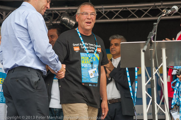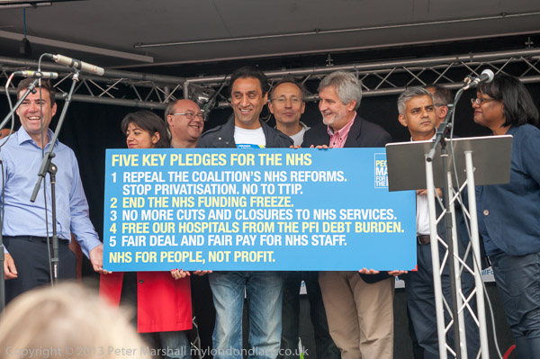 ![]() ![]() 4 Labour MPs and a London Assembly member hold 'Five Key Pledges for the NHS' from the People's March ![]() ![]() 300 milers come up to get their medias - with a pound coin ![]() ![]() ![]() ![]() ![]() Clive Efford MP, Rehana Azam, Sadiq Khan MP, Andy Burnham MP and Dr Onkar Sahota AM Other Labour MPs behind them include Andy Slaughter |