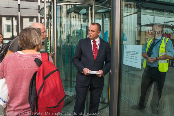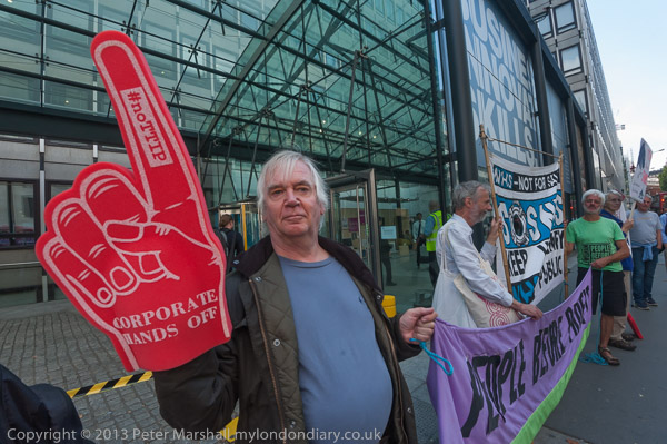 ![]() Campaigners meet next the the Dept of Business, Innovations & Skills (BIS) ![]() 'Corporations to govern Parliament under CETA/TTIP ![]() ![]() ![]() Campaigners try to enter the BIS to hand in a letter ![]() ![]() but are refused entry, but the letter is taken ![]() |