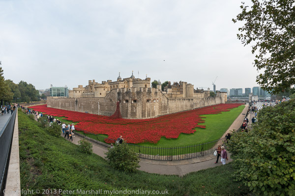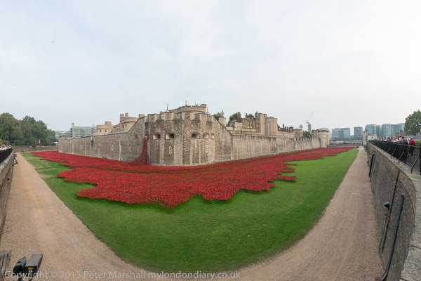 I hadn't come to photograph the poppies in the moat, but had a short time to spare and jumped off the bus