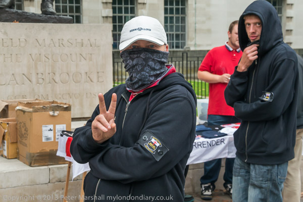 Most EDL members are careful to use 2 fingers when making raised arm salutes