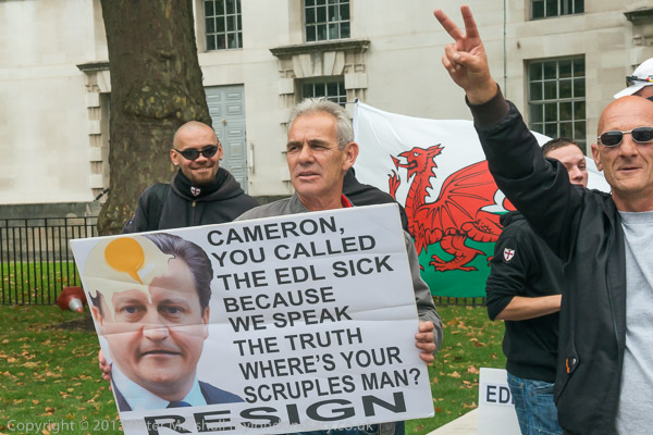 An EDL poster calls on Cameron to resign for calling the EDL sick