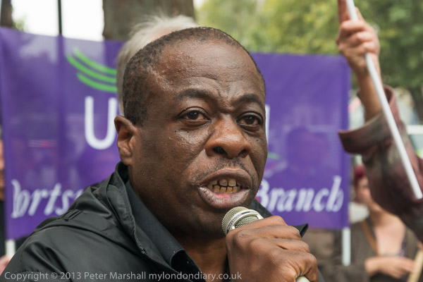 Back down at the counter-protest, Weyman Bennet gives a speech