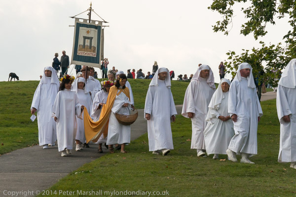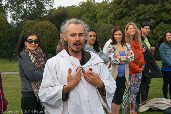 Four druids come from North, East, South and West to the centre to give a blessing of peace to the four corners of the world