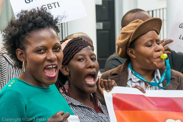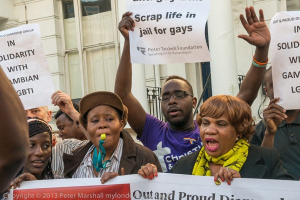 Peter Tatchell was among the protesters, along with others from the Peter Tatchell Foundation