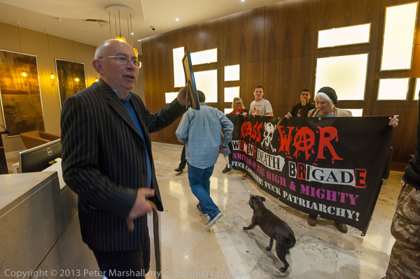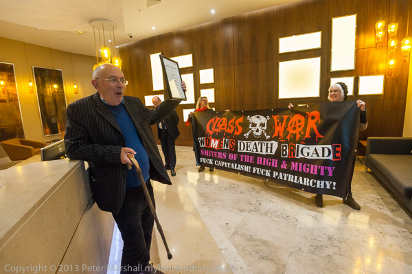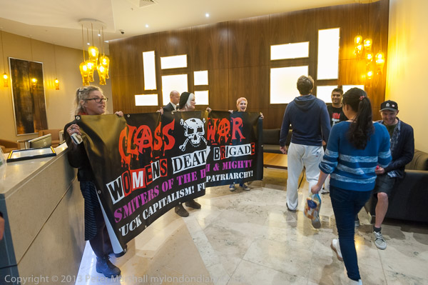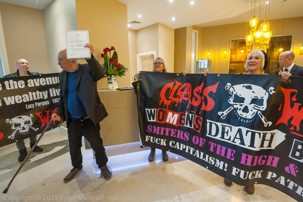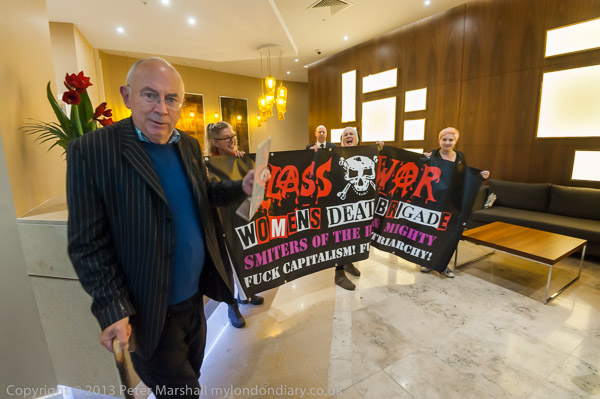 and Class War walk in with a banner