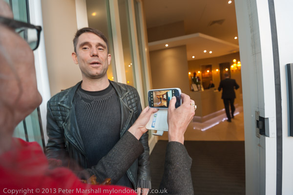 Marina Pepper posing in the revolving door entrance alongside the normal 'rich door'