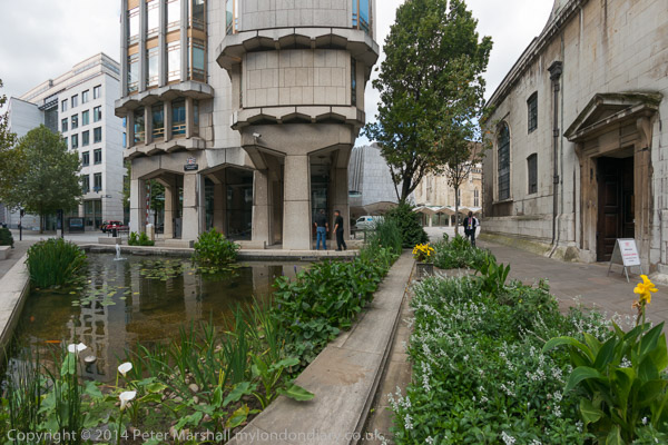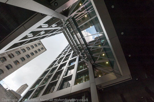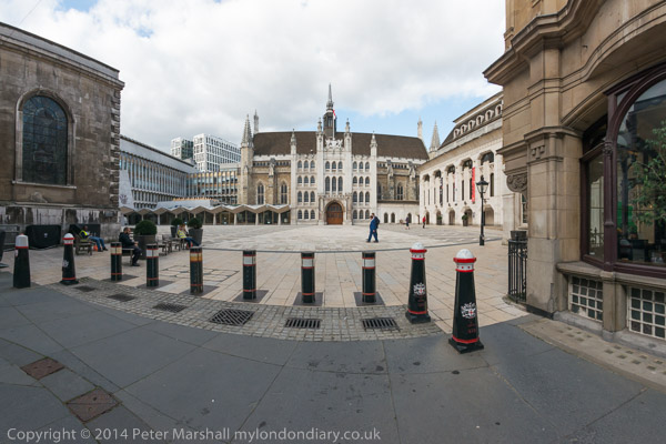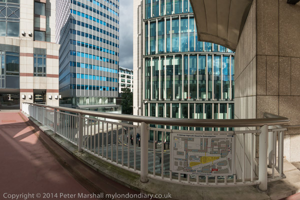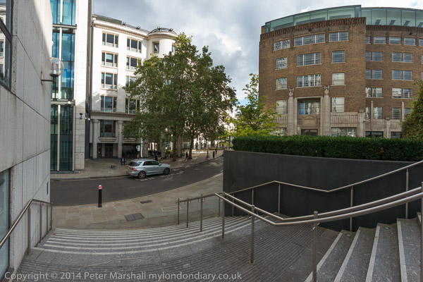 Bassetlaw Highwalk, Basinghall St and Basinghall Avenue. The Highwalk is blocked by gates under City Place House