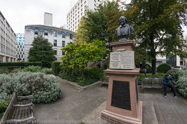 Shakespeare bust in St Mary Aldermanbury Garden, Love Lane