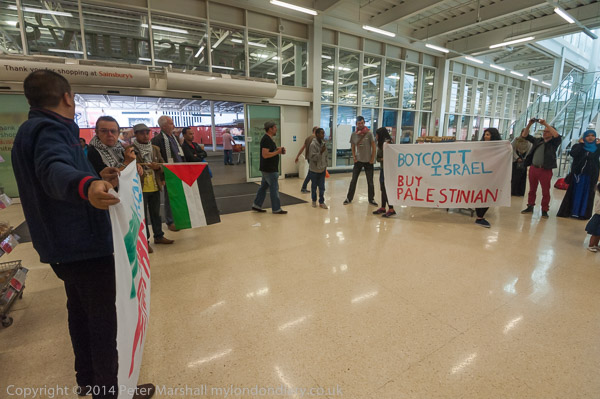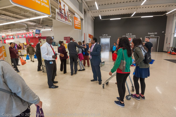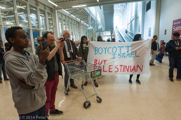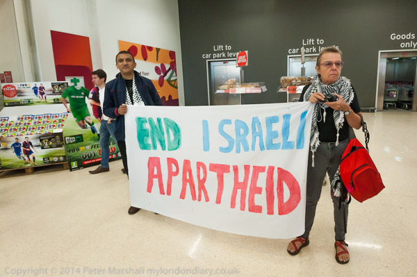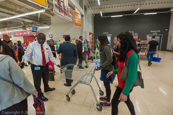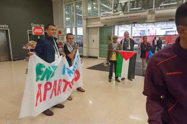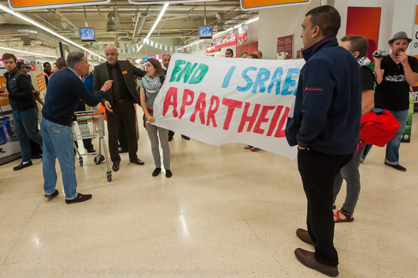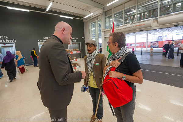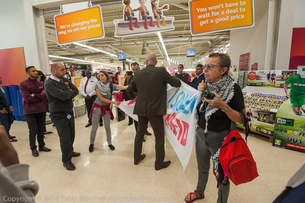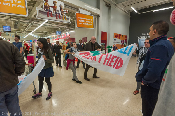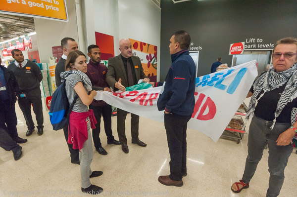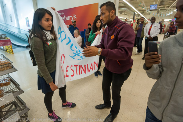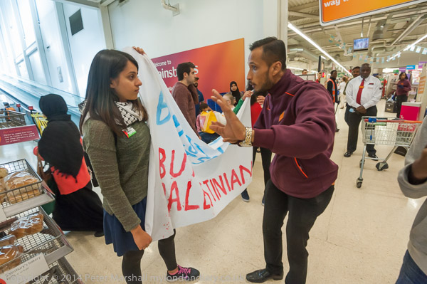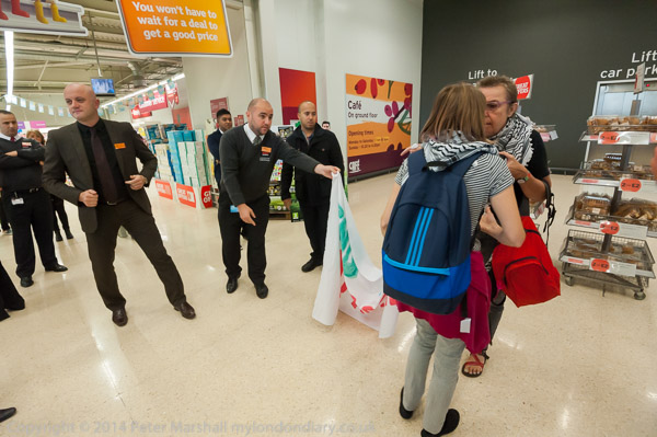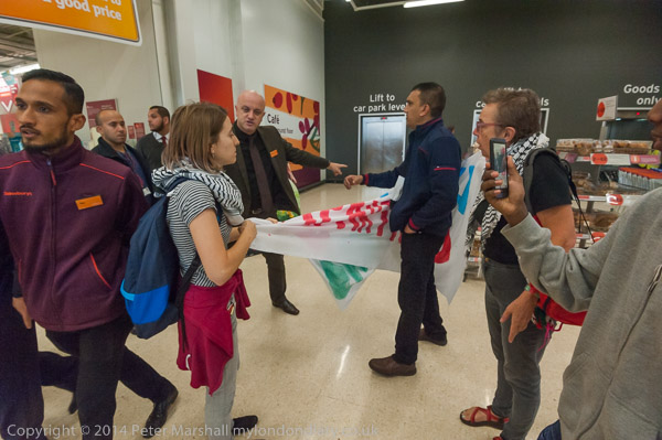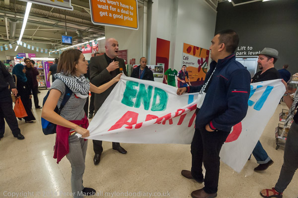 A customer argues with the protesters, but the security ask him to get on with his shopping