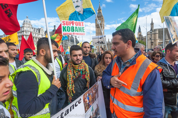 Kurds chanted slogans against ISIS and in support of the defenders of Kobane
