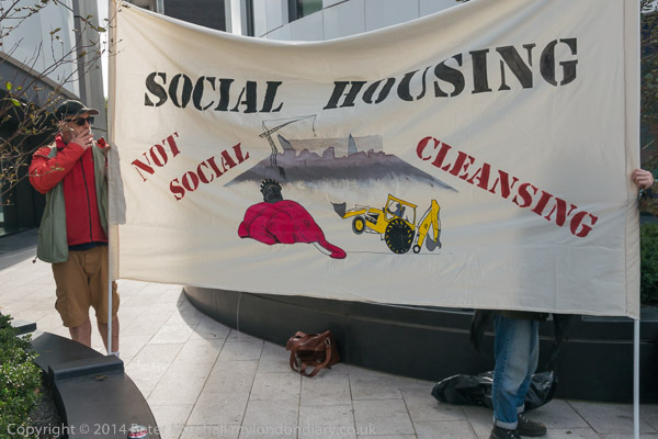 Over 60 people came to the 10th weekly protest at One Commercial St over separate doors for rich and poor tenants of the prestige block at Aldgate.