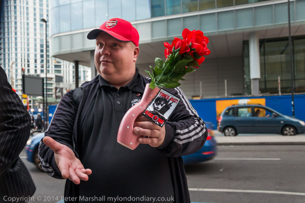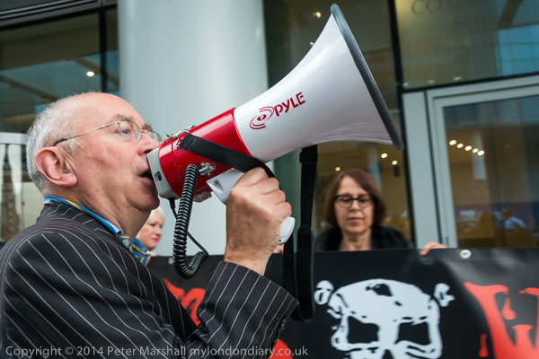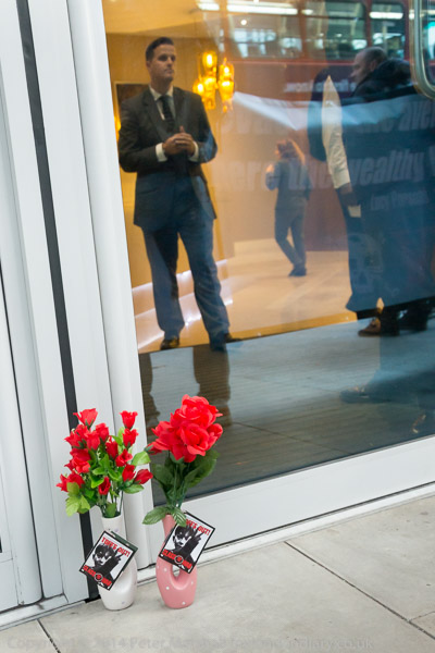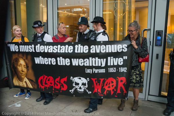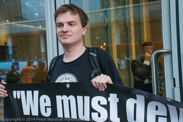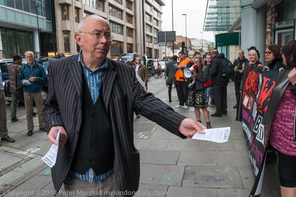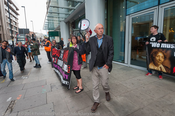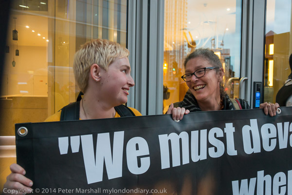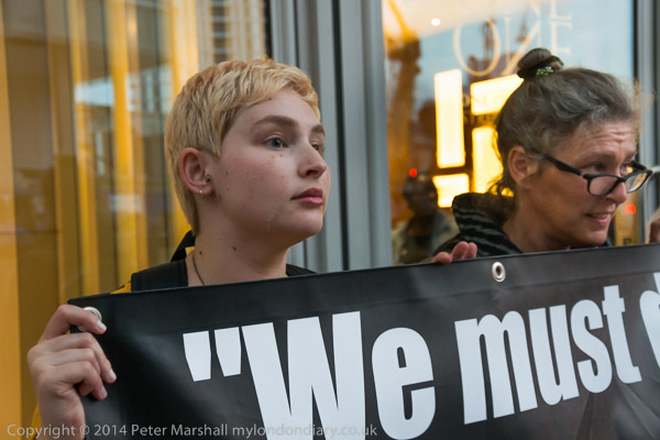 The protesters set up in front of the rich door on Aldgate High St as usual