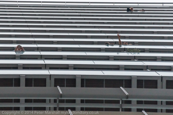 People watch from on high. Many residents are tourists who have rented flats owned by overseas investors for a short stay in London
