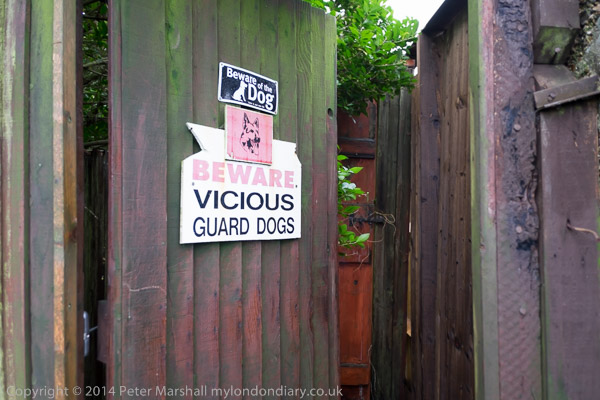 and vicious guard dogs. I didn't see them, but several dogs were barking at us