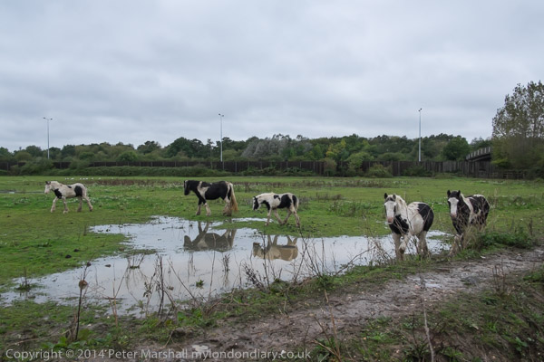 and took a path past a field with some horses in. The rain had pretty well stopped by now