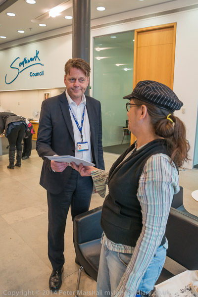 Eventually Stephen Douglas from Southwark Council comes to tell the two protesters that all of the