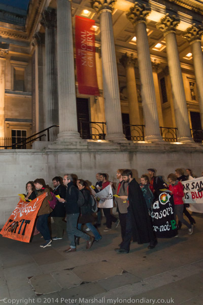 but the protesters decide they want to stand right in front of the Sainsbury wing or they will not be noticed