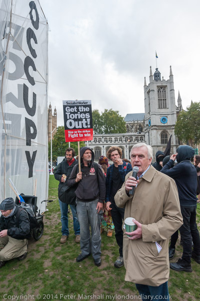 as the protesters continue. John McDonnell MP has now joined them