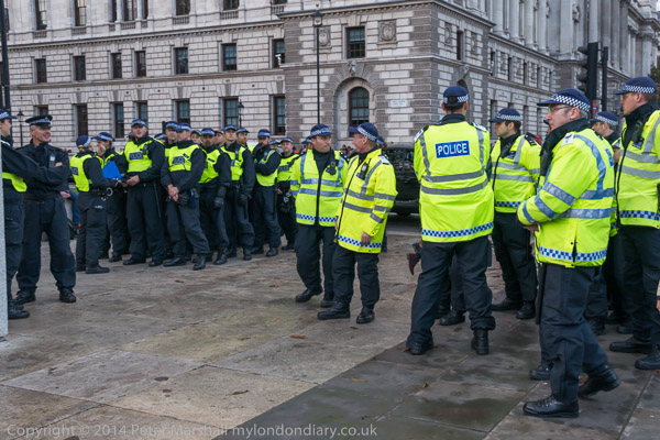 More police arriving and form up in small blocks around the square, waiting for the order to charge