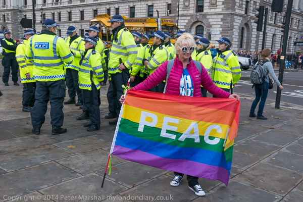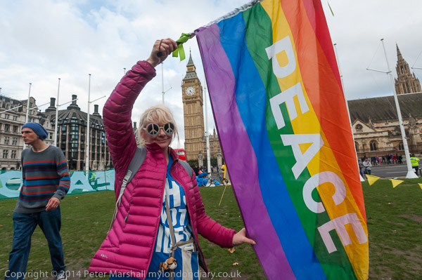 And a woman with rainbow peace flag poses for me in front of Big Ben