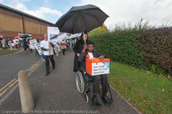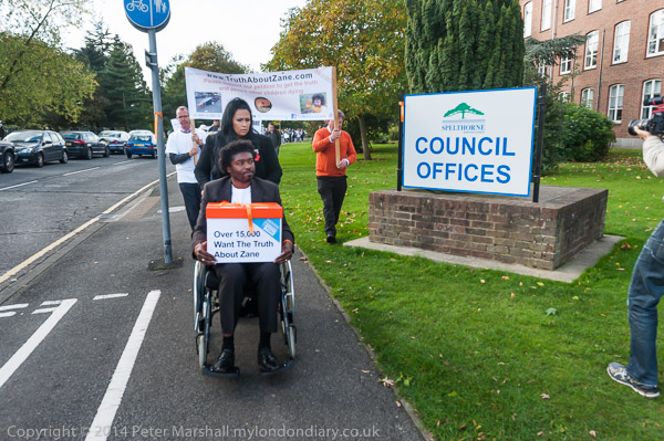 Zane's parents, family members and 38 degrees campaigners met at Spelthorne Leisure centre, where a couple of TV crews had come for the event