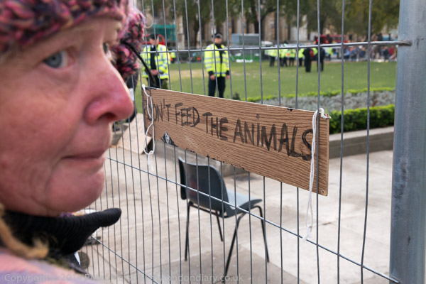 'Don't Feed the Animals' sign on the fence