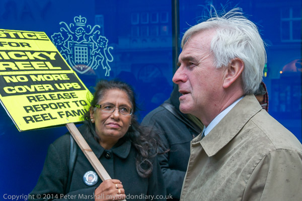 including Sukhdev Reel, Ricky's mother here seen talking to John McDonnell MP