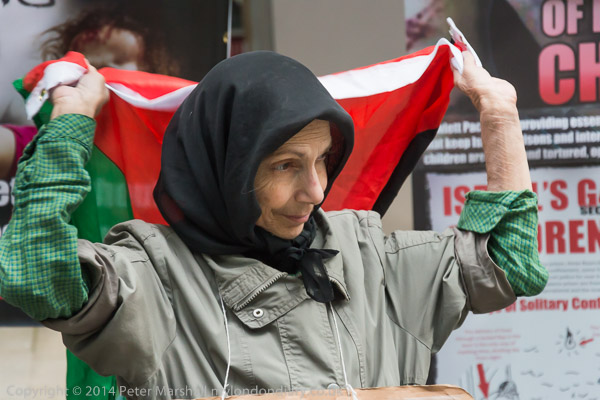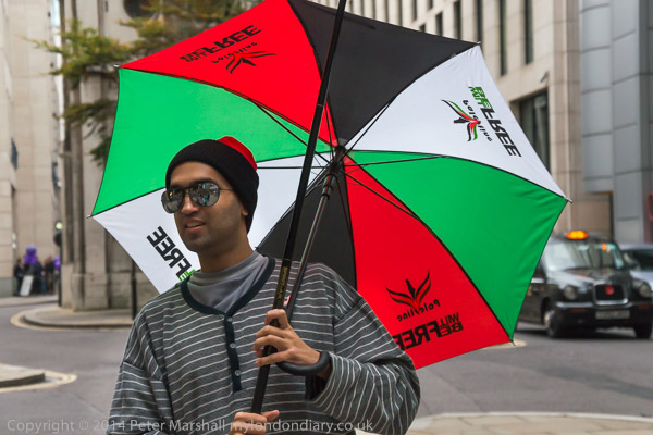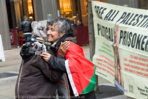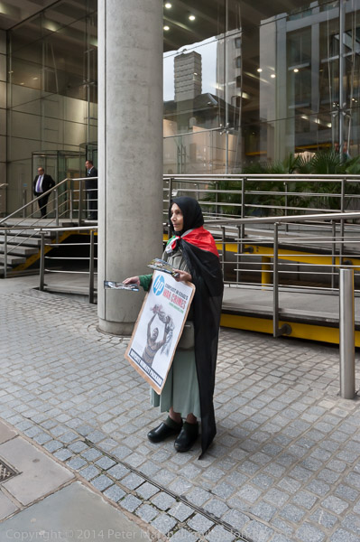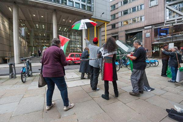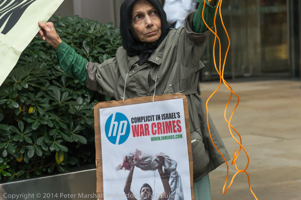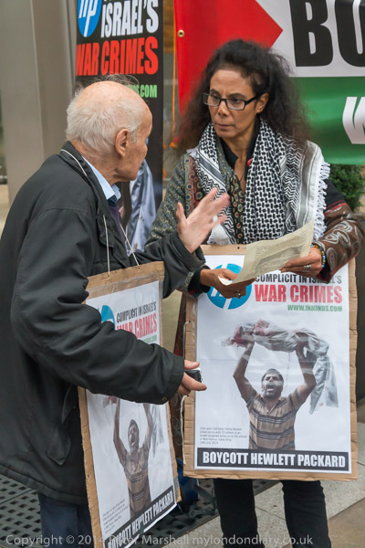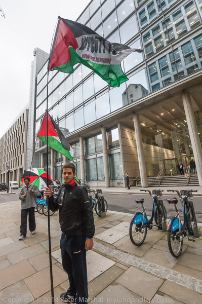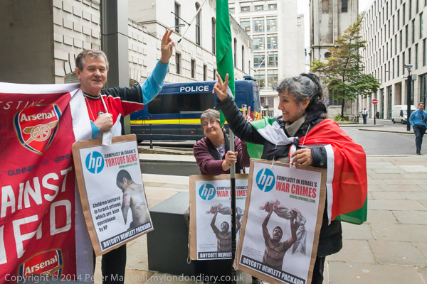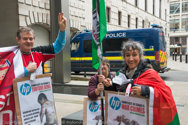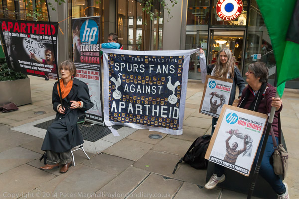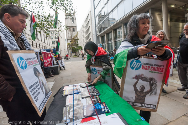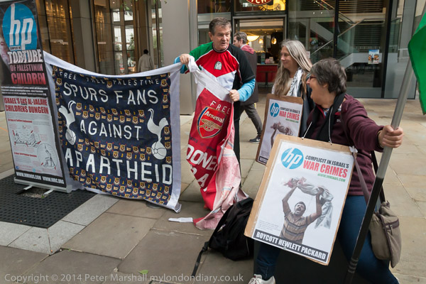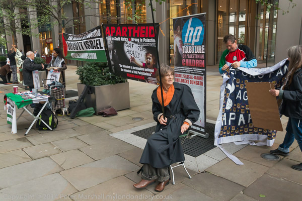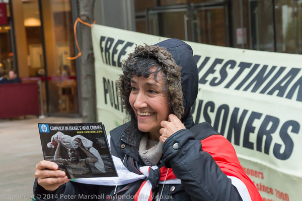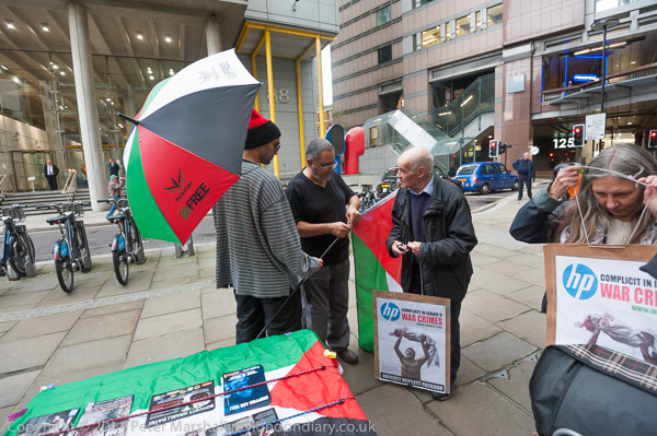 The Palestinian Prisoners Campaign set up on the wide pavement across the street from the large HP offices