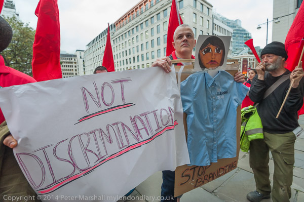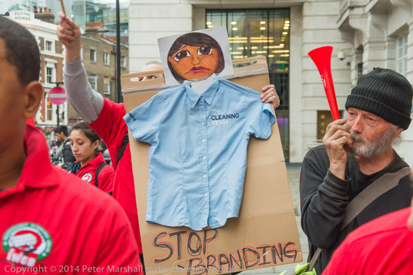 One protester with 'THE CLEANING TEAM' shirt they object to