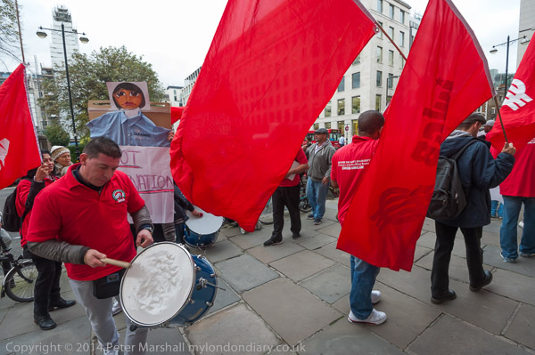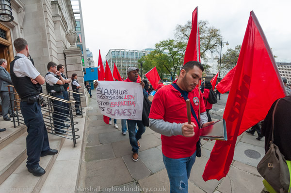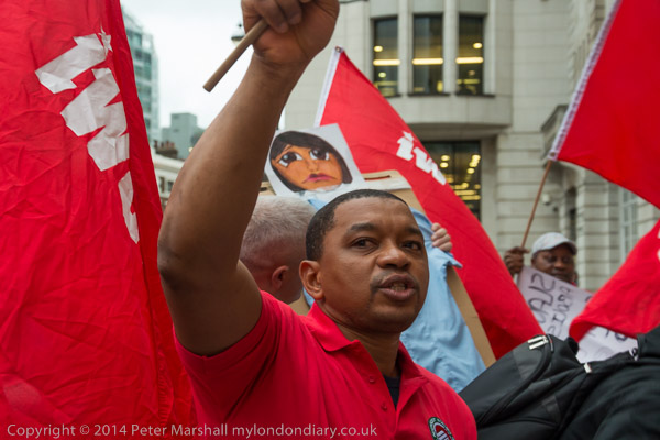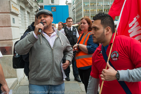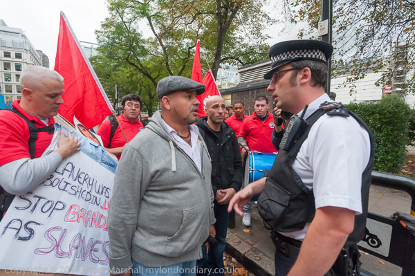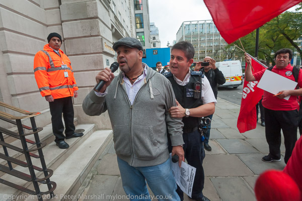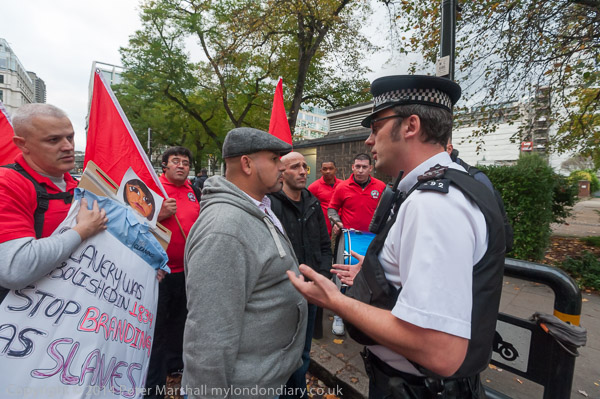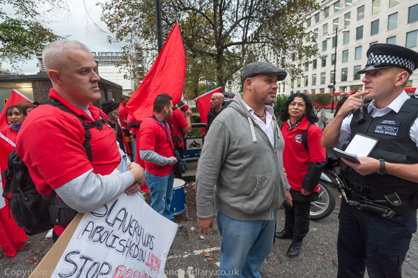 A police officer tries to get the IWGB to talk with managers, and thus avoid further protests