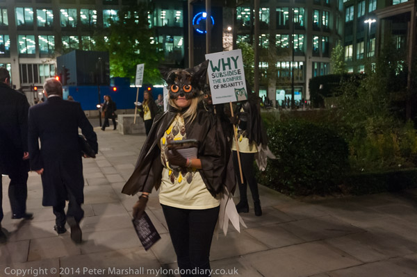 Some going into the bank for the party stopped to talk and argue with the protesters, and perhaps learnt something
