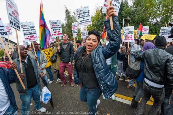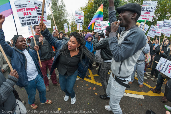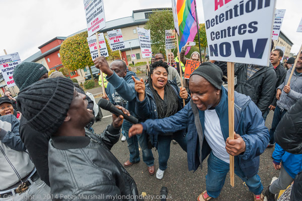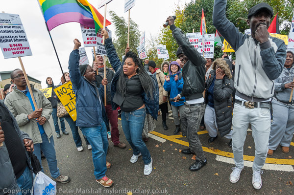 The protesters were outside the administration building - and had to shout loud to be heard by the detainees