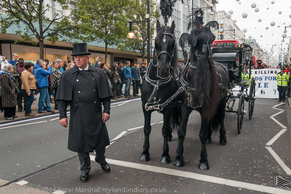 The funeral procession goes down Oxford St