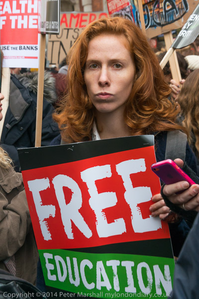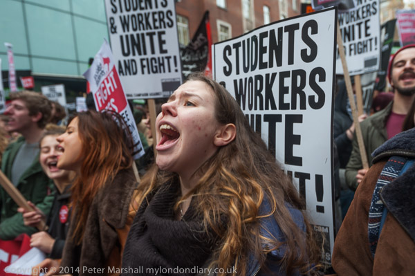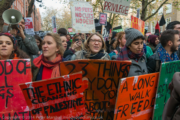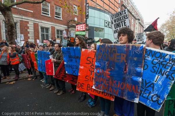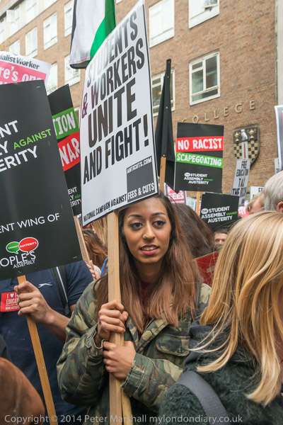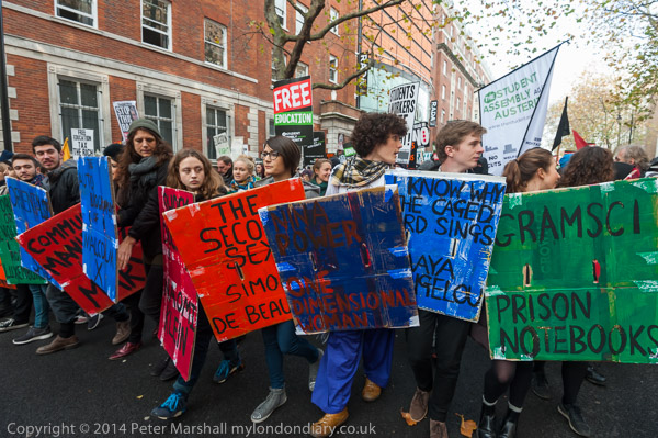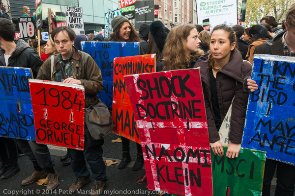 'Students & Workers Unite and Fight' placards from the National Campaign Against Fees & Cuts