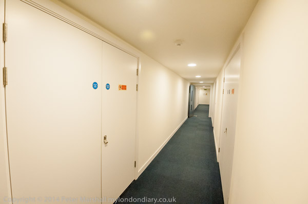 and a very bare looking group of post lockers leads to a small door at the end of a long corridor