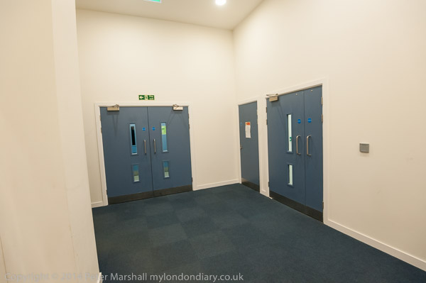is a member of Redrow staff and a security guard on duty. Normally there is just a doo, with a card entry system