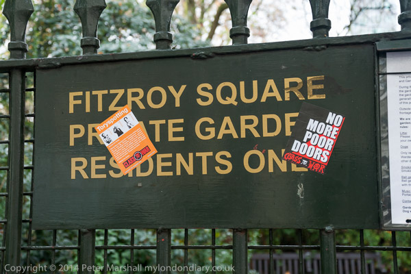 Ian Bone shouts up at £7m Fitzroy Square home of Griff Rhys Jones who has probably gone away for the weekend.