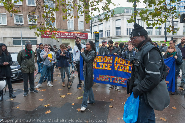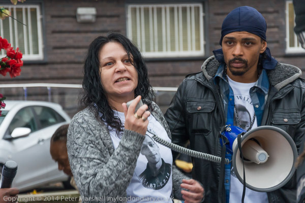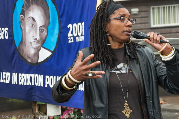 Marcia turns and shouts back angrily. Police killed her brother - using unnecessary and excessive force according to the inquest jury.